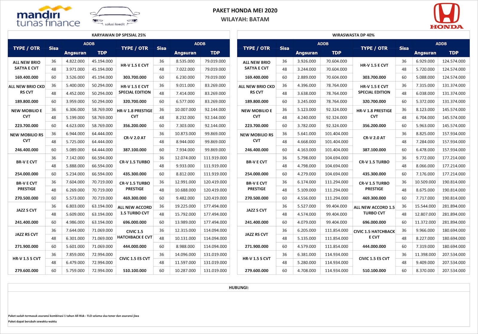 Update Harga By Mandiri Tunas Finance Juni 2020 Honda Nagoya Batam
