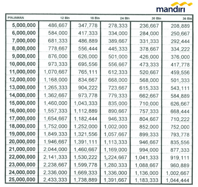 10 Tabel Angsuran Pinjaman Bank Mandiri 2021 Idekredit