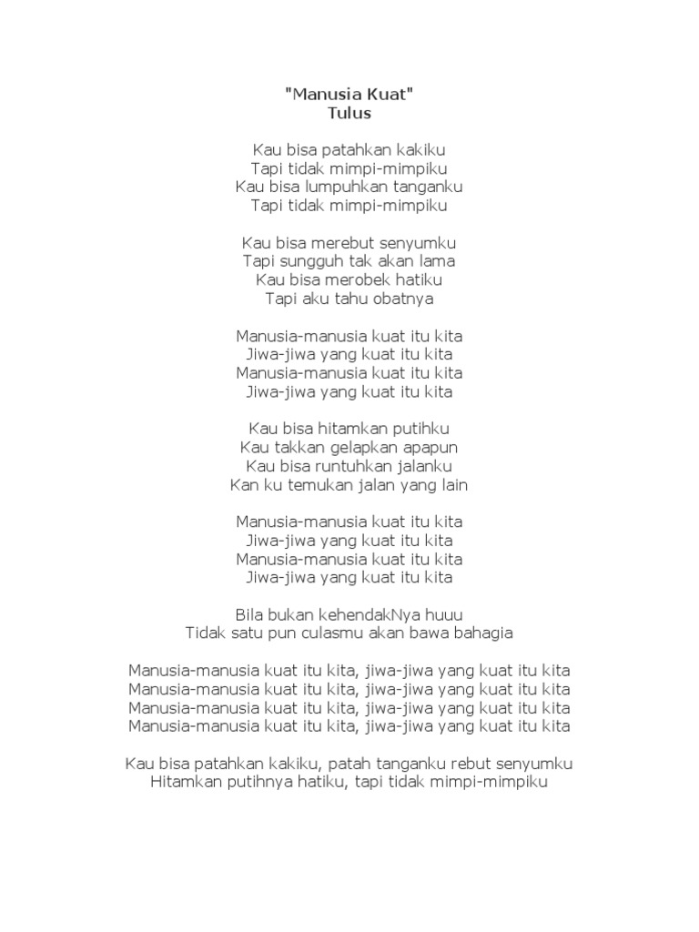 Lirik Dan Chord Lagu Manusia Kuat Tulus Kau Bisa Patahkan Kakiku Tapi Tidak Mimpi Mimpiku Kabar Lumajang