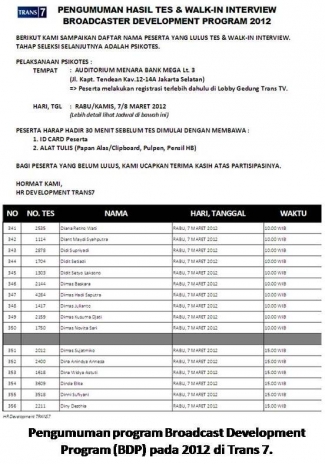 Lowongan Kerja Pt Duta Visual Nusantara Tivi Tujuh Trans 7 Dinaskerja