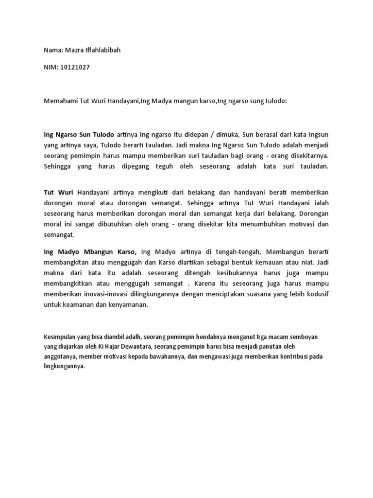 Pengertian Dan Arti Tut Wuri Handayani Docx Document