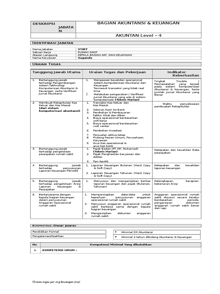 Uraian Tugas Staf Pengelola Keuangan Tugas Pokok