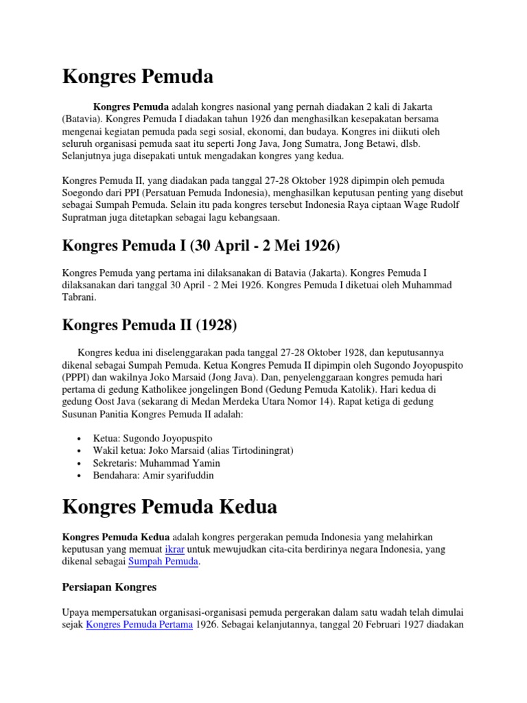 Sumpah Pemuda Diadakan Dengan Tujuan Brainly Co Id
