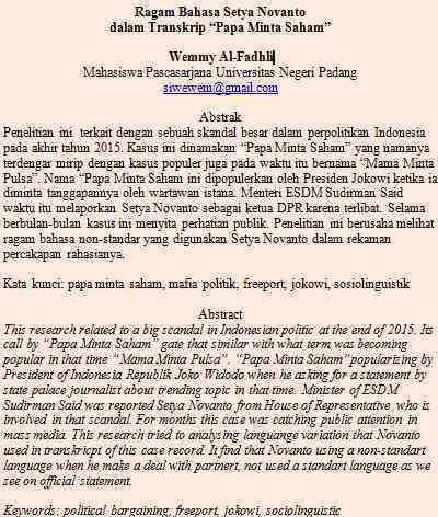 Ragam Bahasa Setya Novanto Dalam Transkrip Papa Minta Saham