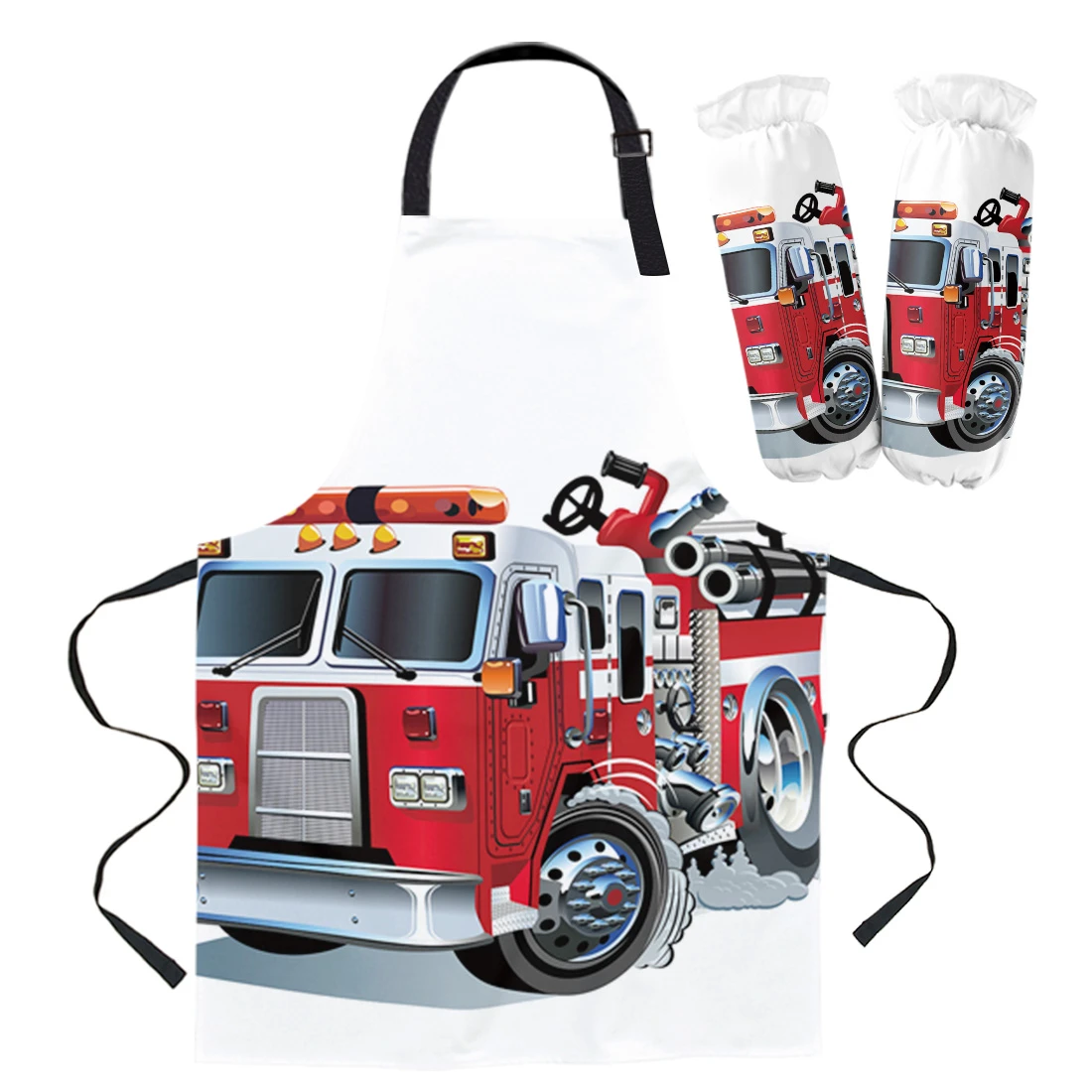 Kartun Truk Pemadam Kebakaran Apron Sehelai Kain Di Atas Oven Sarung Tangan Bantalan Memasak Baking Dapur Celemek Untuk Wanita Anak Celemek Aliexpress