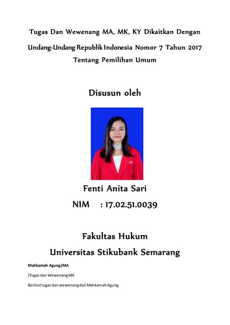 Tugas Wewenang Kedudukan Dan Fungsi Ma Mk Dan Ky By Zalika Nidasoliah