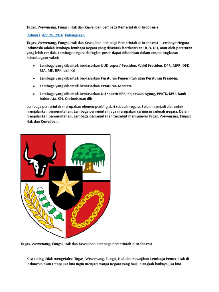 Tugas Wewenang Fungsi Hak Dan Kewajiban Lembaga Pemerintah Di Indonesia Markijar Com