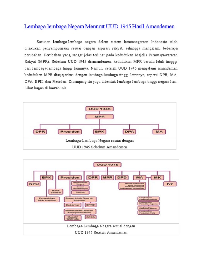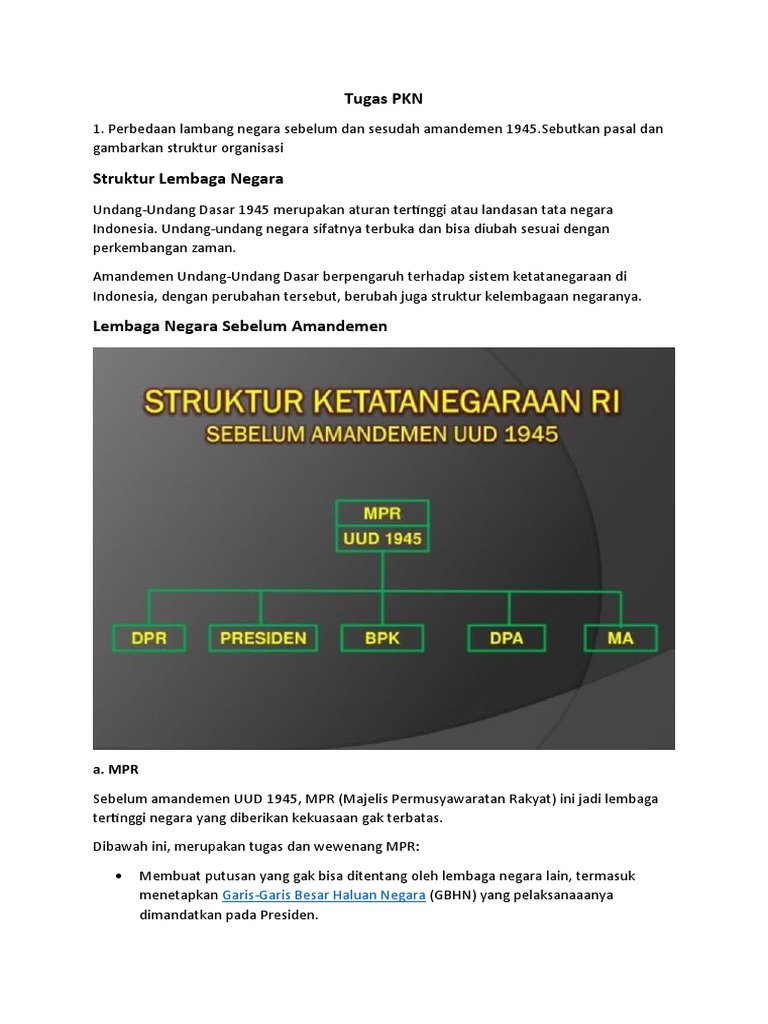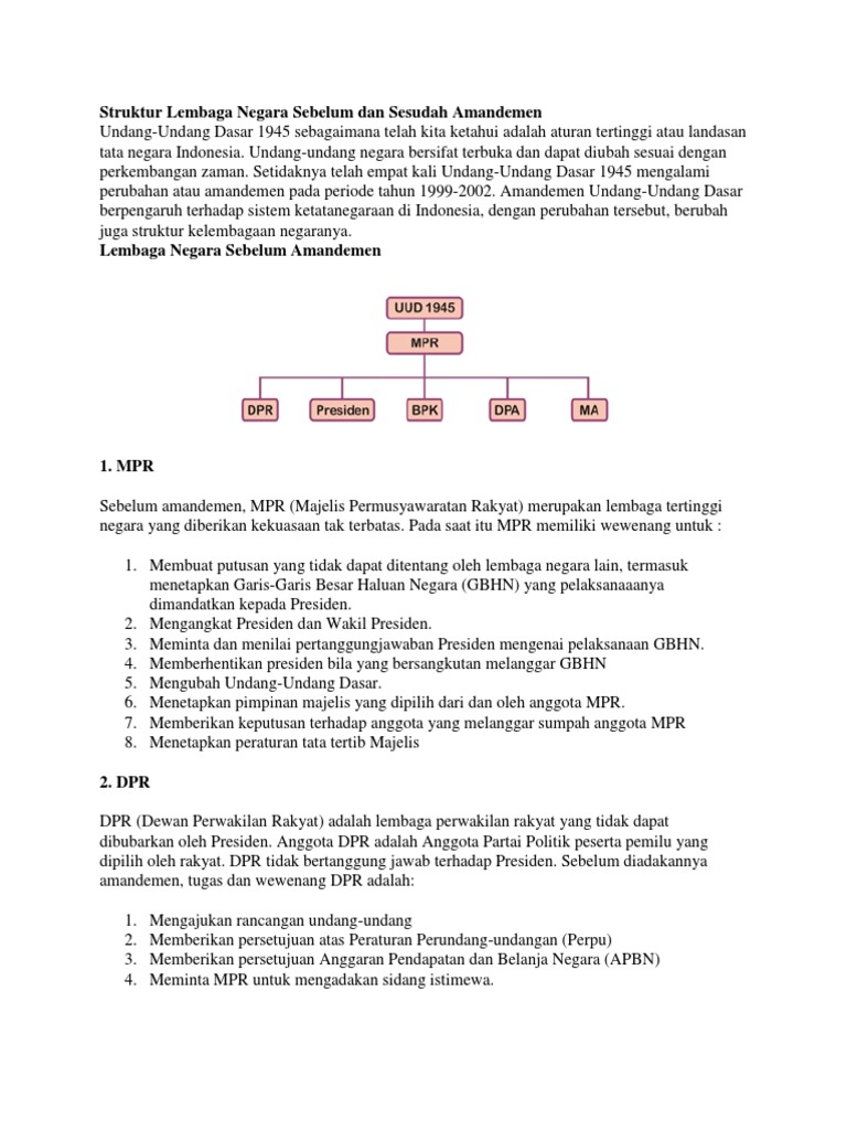 Lembaga Negara Sebelum Dan Sesudah Amandemen Uud 1945 Juragan Les