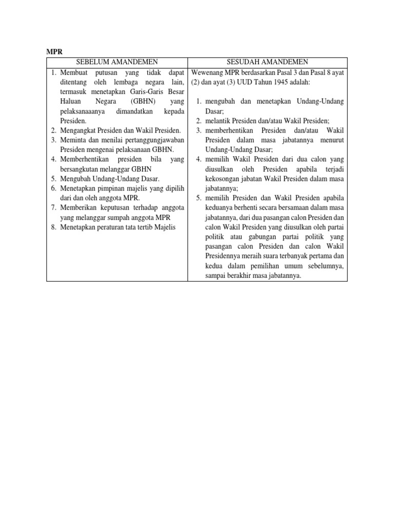 Tabel Perbedaan Wewenang Mpr Sebelum Dan Sesudah Amandemen Satuhukum Com