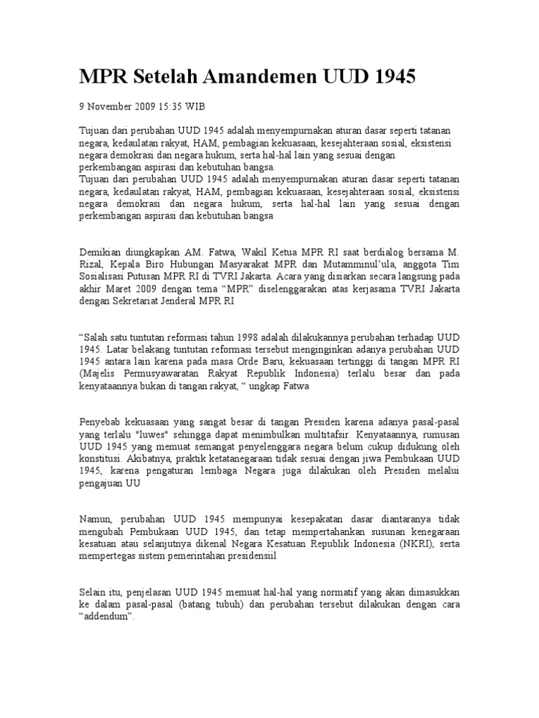 Amandemen Uud 1945 Identifikasi Perubahan Kelembagaan Pdf Document