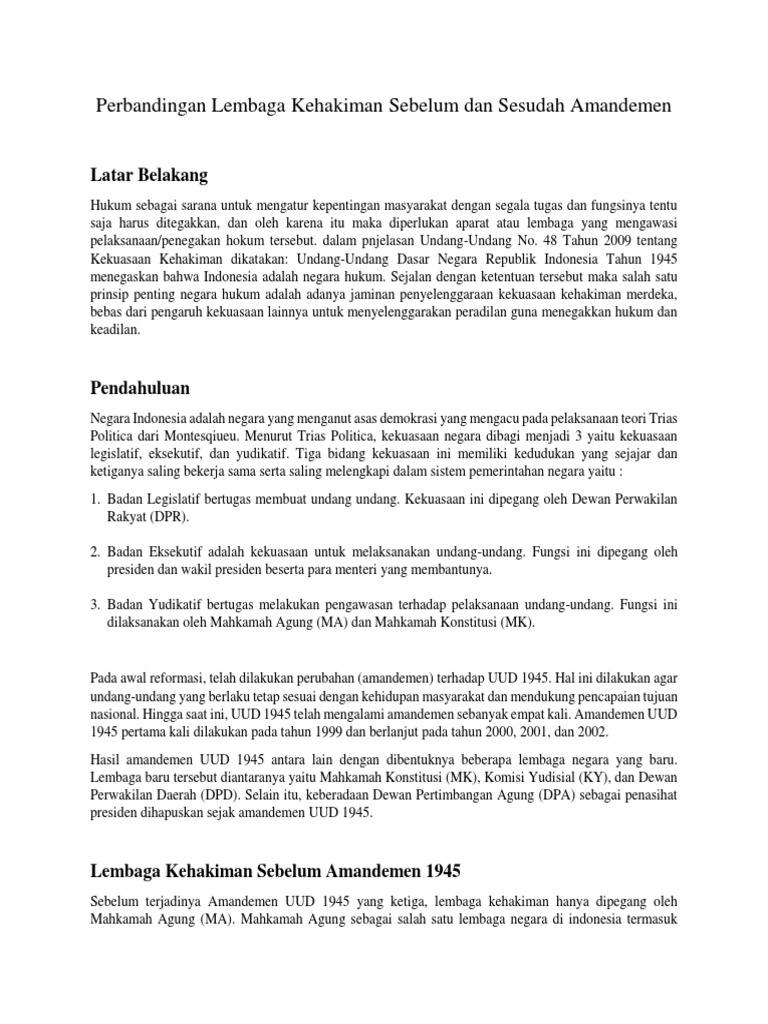 Perbedaan Sistem Pemerintahan Sebelum Dan Sesudah Amandemen Docx Document