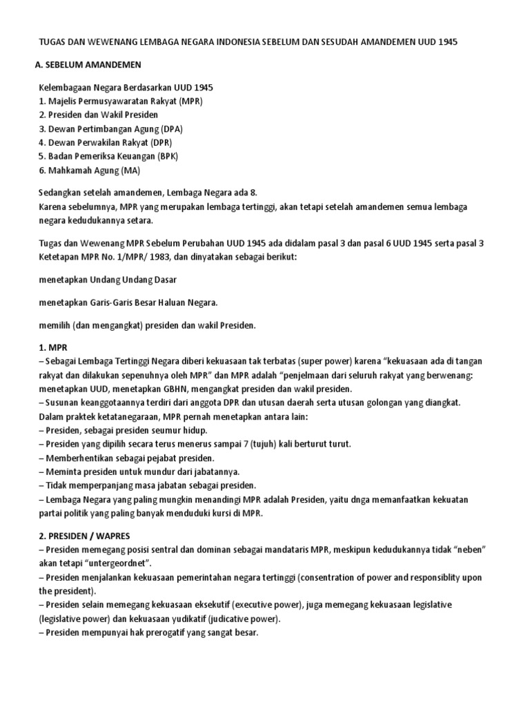 Tugas Dan Wewenang Lembaga Negara Indonesia Sebelum Dan Sesudah Amandemen Uud 1945 Sandelwood