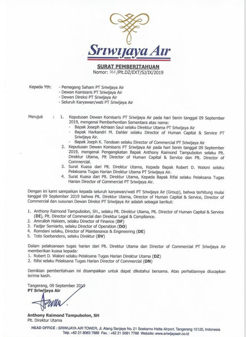 Dirut Sriwijaya Air Diberhentikan Komisaris Kumparan Com