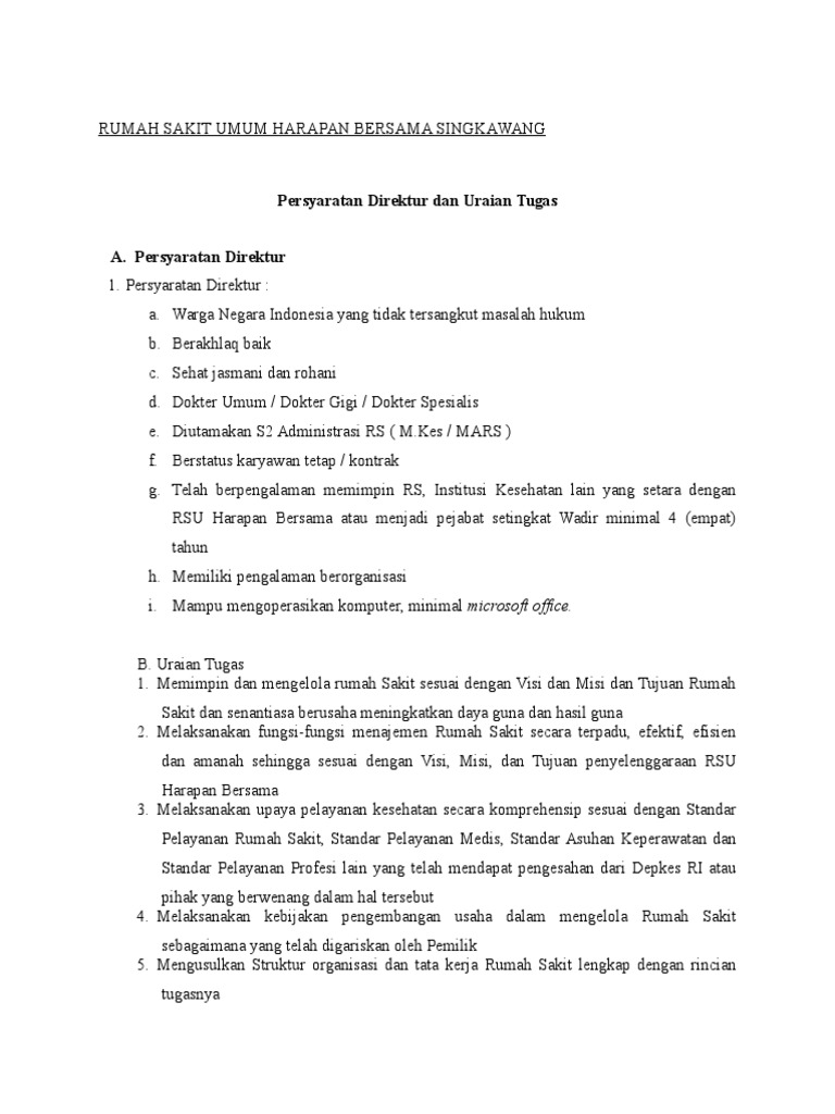 Uraian Tugas Direktur Rs