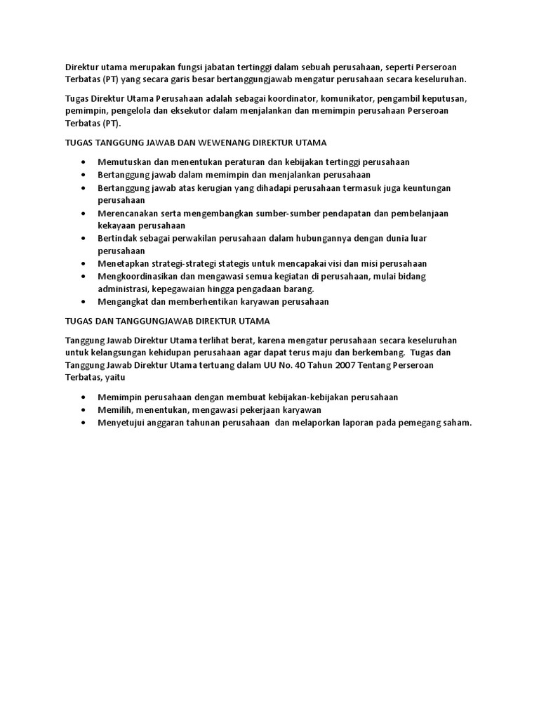 Tugas Direktur Utama Wewenang Dan Kewajiban Harus Di Lakukan