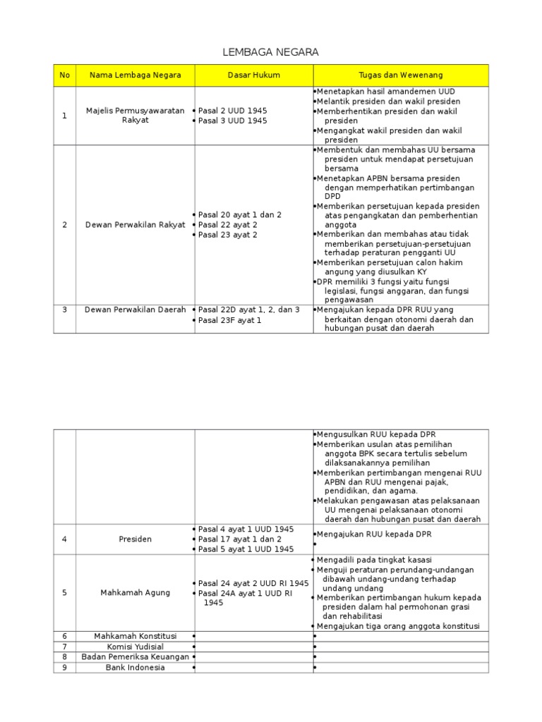 Kewenangan Lembaga Lembaga Negara Setelah Amandemen Lengkap