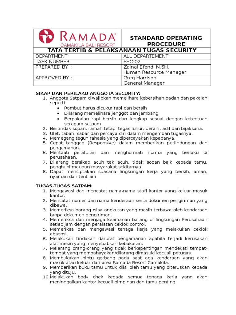 Tugas Pokok Satpam Tugas Pokok