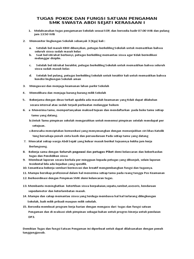 Contoh Tugas Dan Fungsi Petugas Satpam Sekolah Antapedia Com