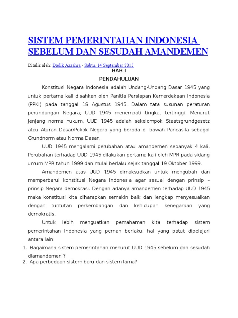 Sistem Pemerintahan Indonesia Sebelum Dan Sesudah Amandemen