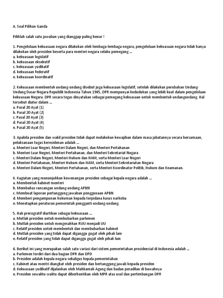 Kewenangan Presiden Sebagai Kepala Negara Dan Kepala Pemerintahan