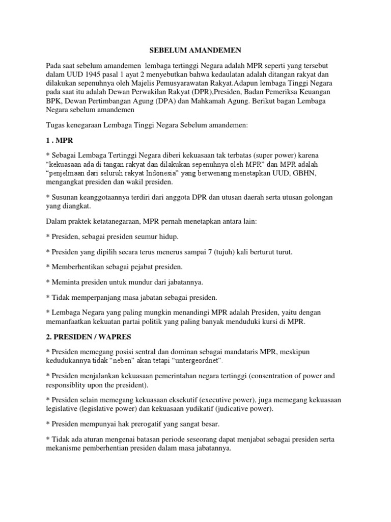 Lembaga Negara Sebelum Dan Sesudah Amandemen Uud 1945 Juragan Les