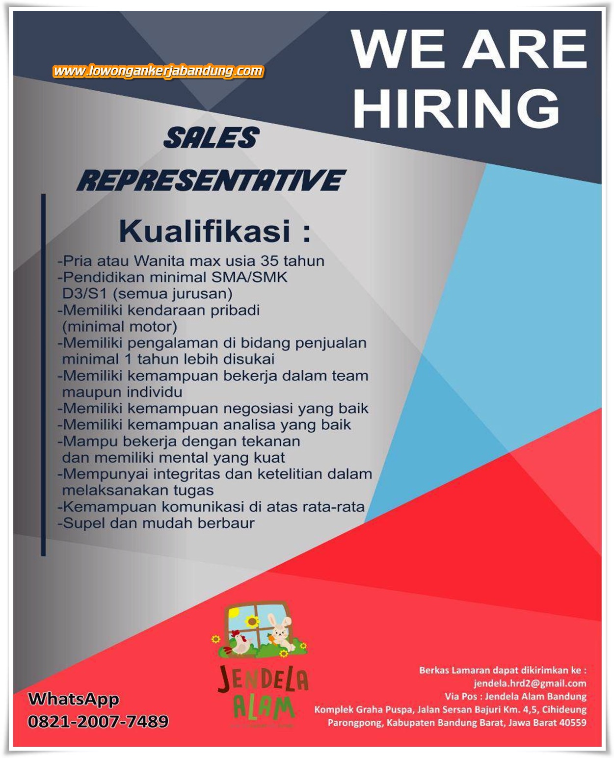 Lowongan Kerja Sales Representative Jendela Alam Bandung Lowongan Kerja Bandung Lowongankerjabandung Com
