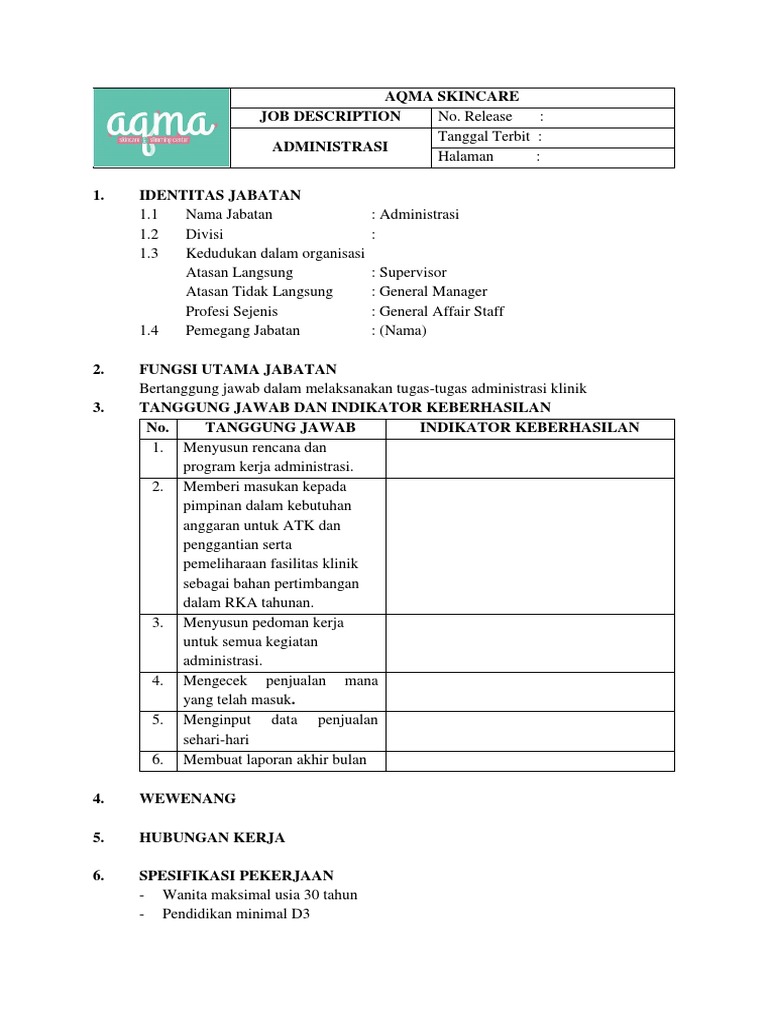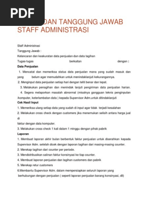 Tugas Dan Tanggung Jawab Staff Administrasi Nur Niya