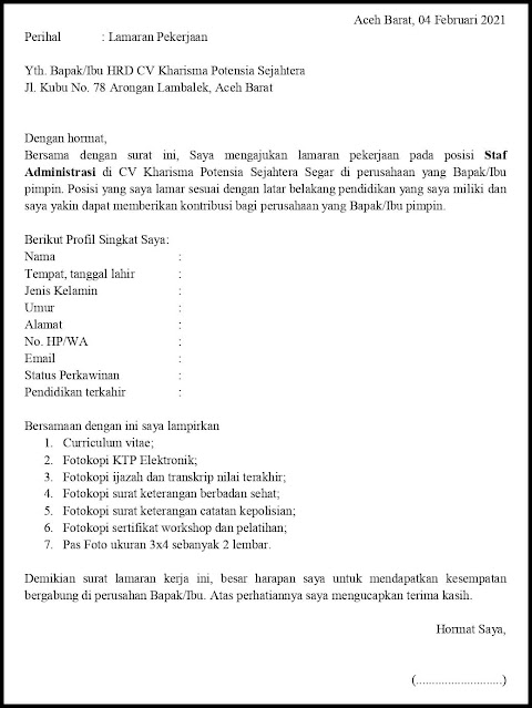 Contoh Surat Lamaran Pekerjaan Untuk Staf Administrasi Fresh Graduate Dan Experienced Tanpakoma