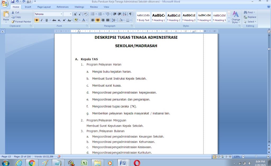 Daftar Uraian Tugas Tata Usaha Sekolah