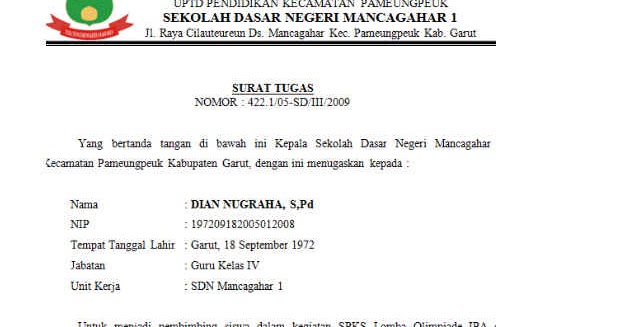 5 Contoh Surat Tugas Guru Dinas Perusahaan Dll Lengkap