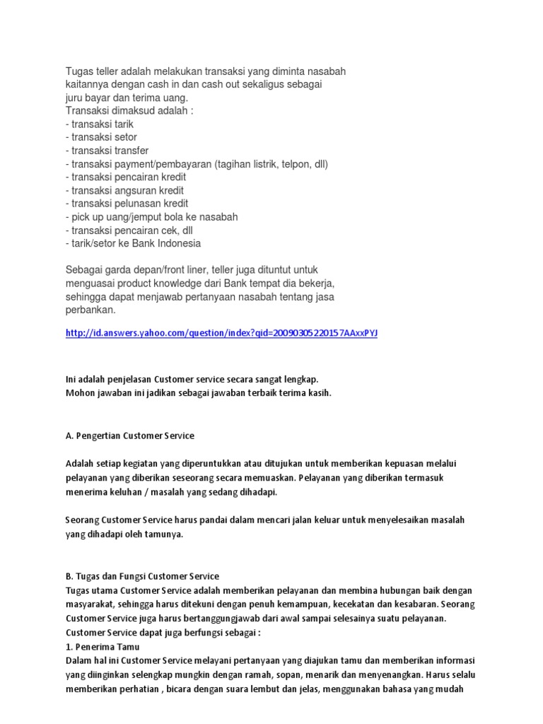 Tugas Dan Job Desk Teller Bank
