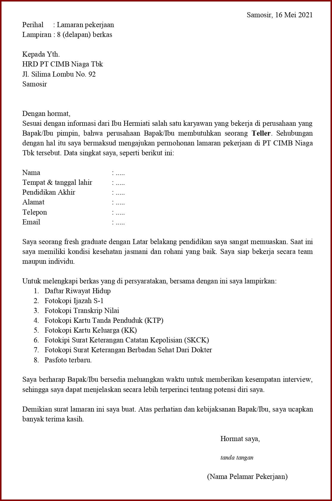 Contoh Surat Lamaran Kerja Untuk Teller Fresh Graduate Tanpakoma