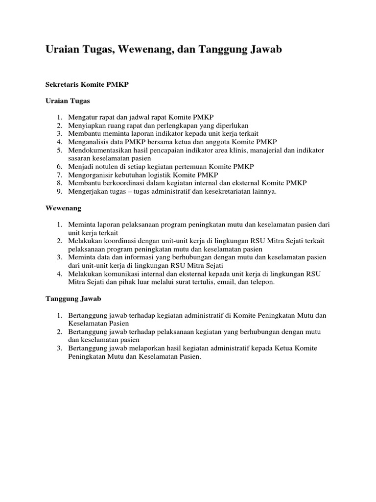Tugas Dan Tanggung Jawab Sekretaris Tugas Dan Tanggung Jawab