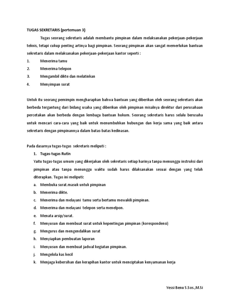 Tugas Tugas Seorang Sekretaris Dinasite S