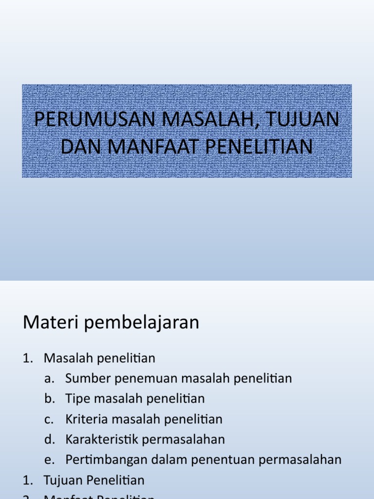 Tujuan Dan Manfaat Penelitian Ppt Pdf Document