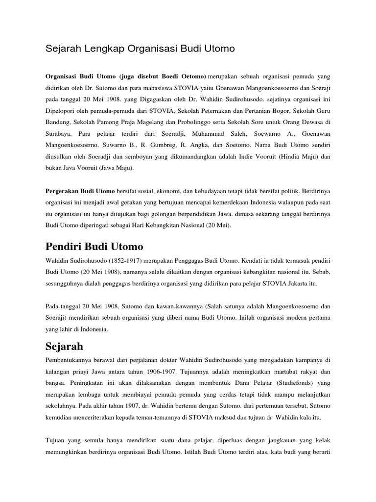 Sejarah Organisasi Pergerakan Nasional Budi Utomo Docx D49ogdze5149