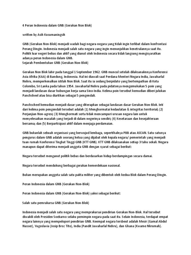 Sebutkan Peranan Indonesia Dalam Gerakan Non Blok Gnb Ini 3 Perannya