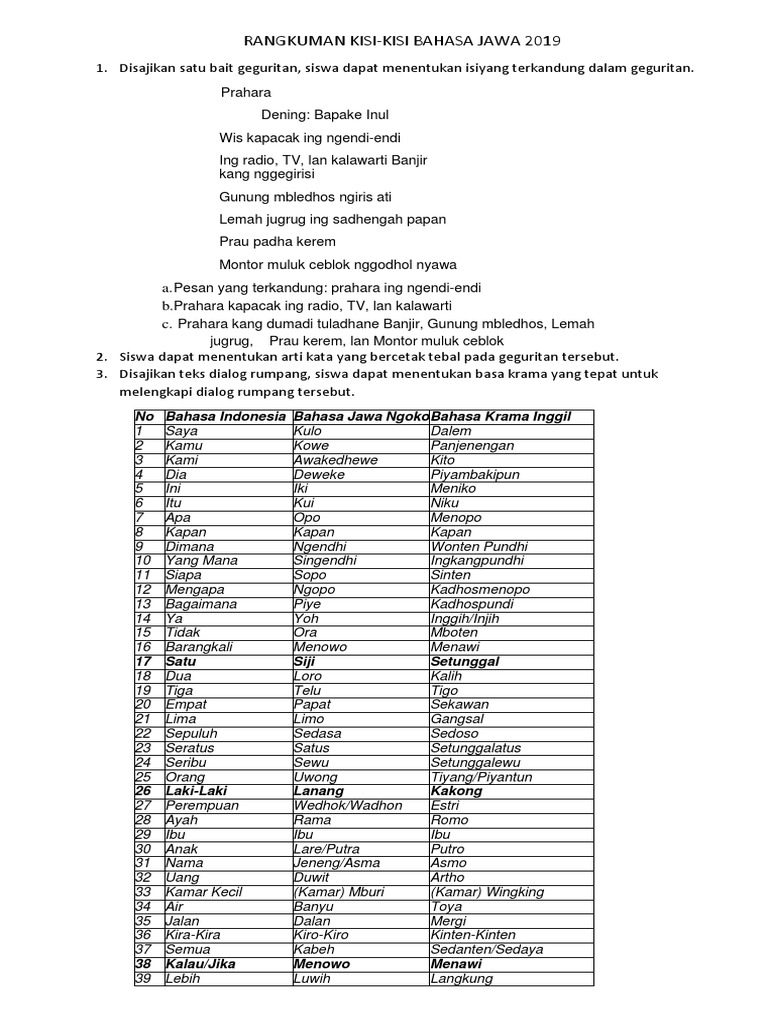 Rangkuman Materi Bahasa Jawa Sma Tahun 2020