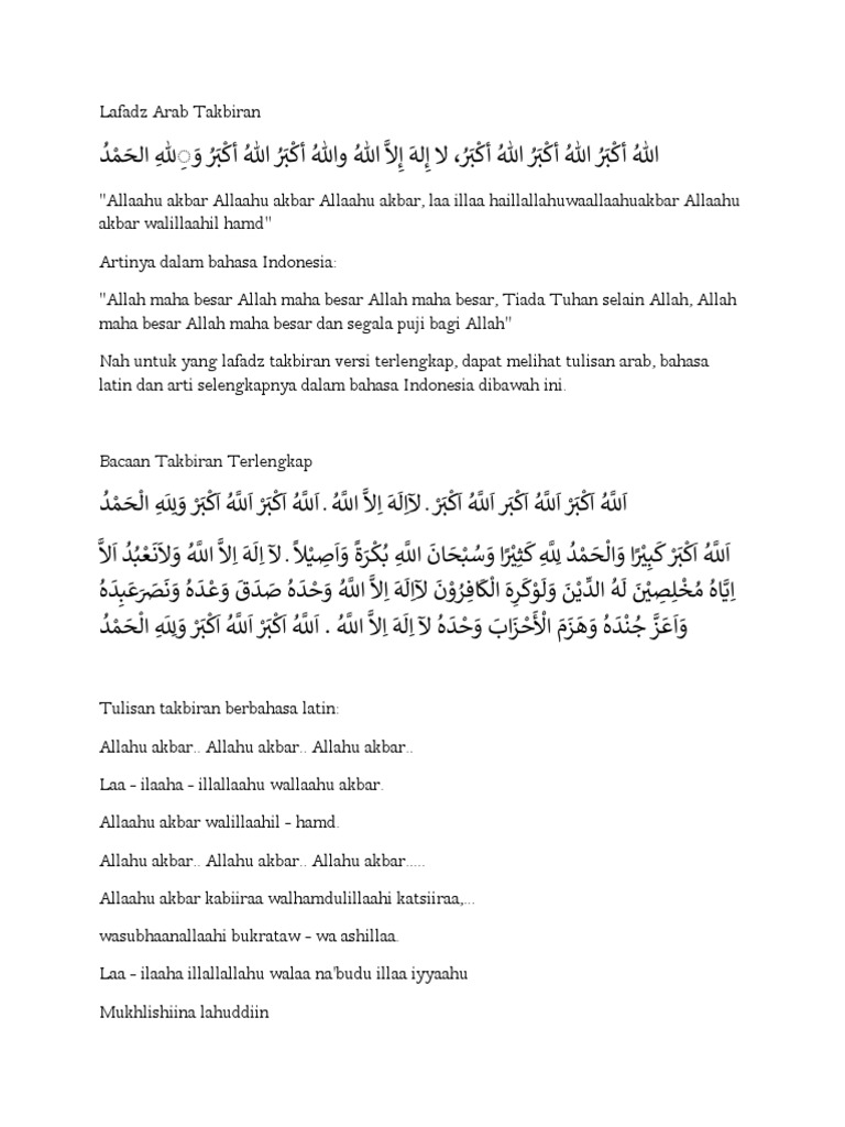 Takbir Hari Raya Idul Fitri Arab Latin Dan Artinya Fathulghofur Com