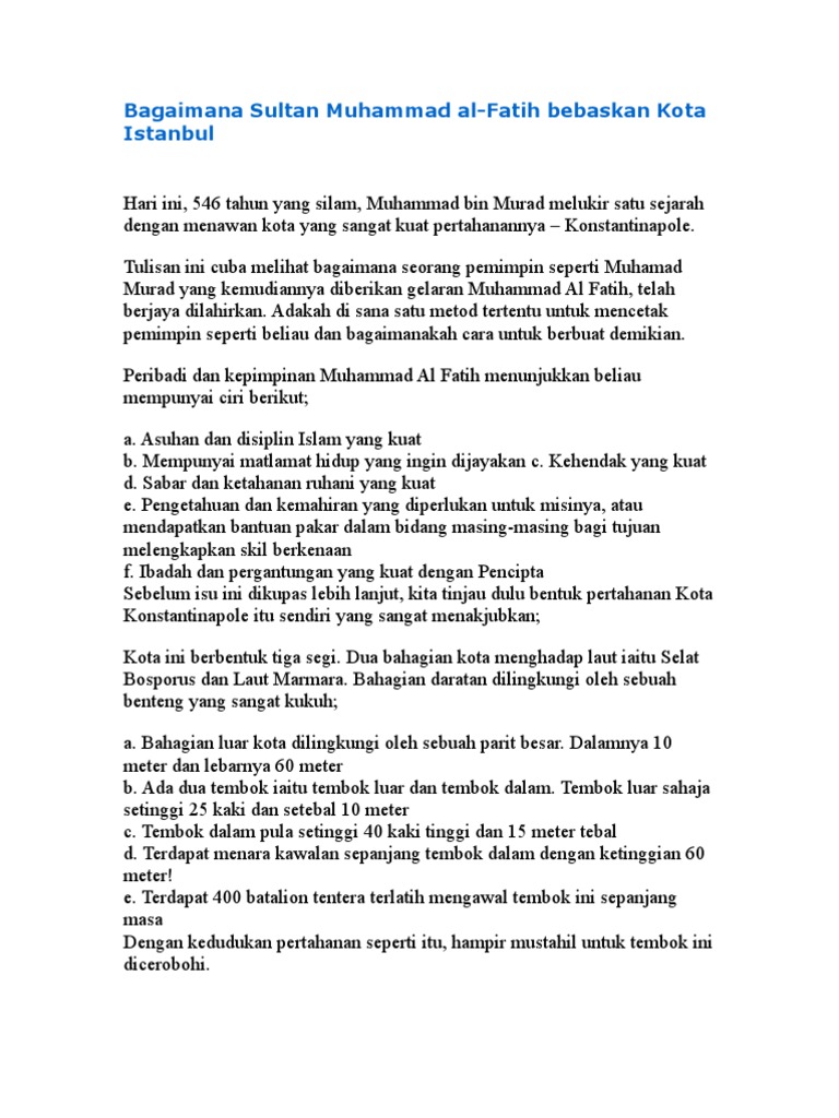 Muhammad Al Fatih Penakluk Konstantinopel Yayasan Rumah Sedekah