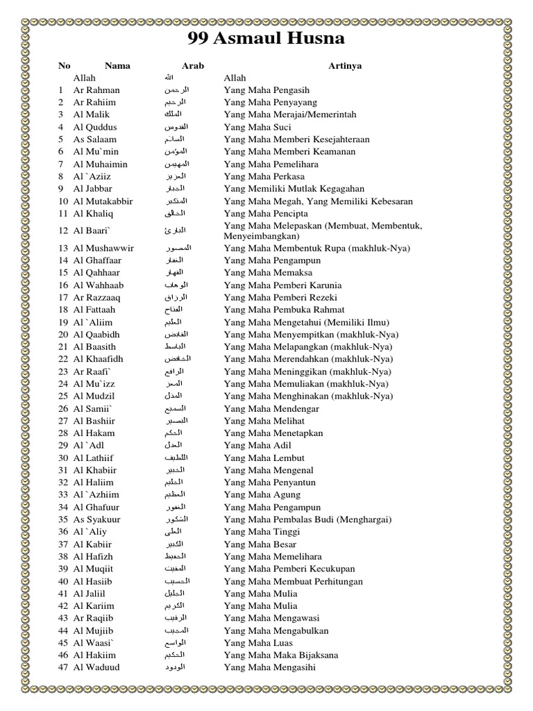 Tabel Asmaul Husna Dan Artinya Pdf Download Top