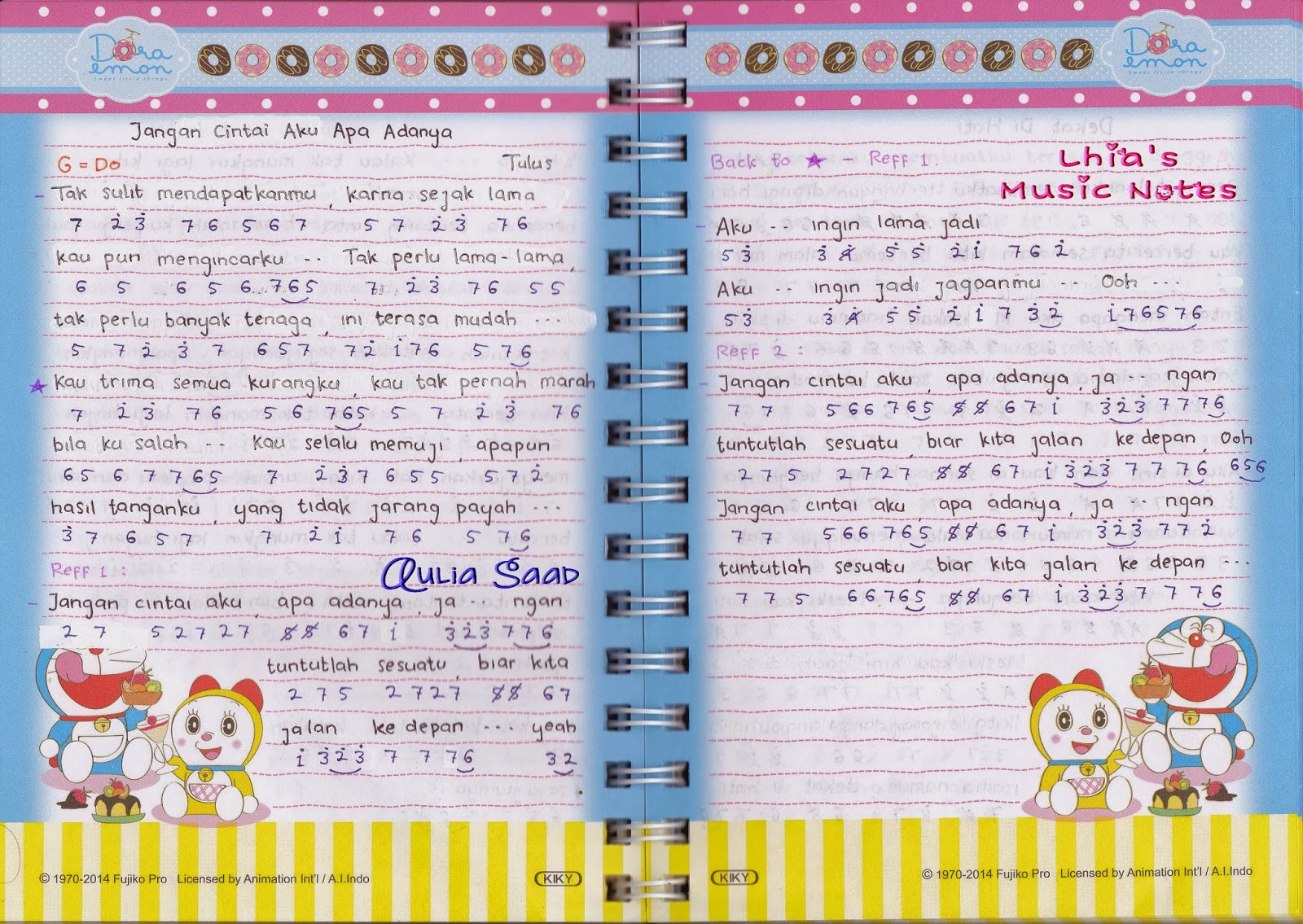Not Angka Pianika Tulus Jangan Cintai Aku Apa Adanya Tak Perlu Lama Lama Tribunjateng Com