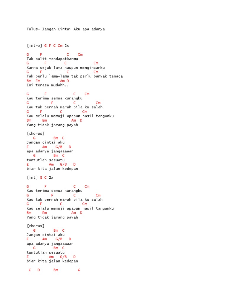 Chord Gitar Dan Lirik Lagu Jangan Cintai Aku Apa Adanya Tulus Kau Tak Pernah Marah Bila Ku Salah Tribunpalu Com