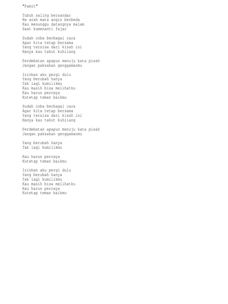 Tulus Pamit Lirik Lagu Lagu Lirik