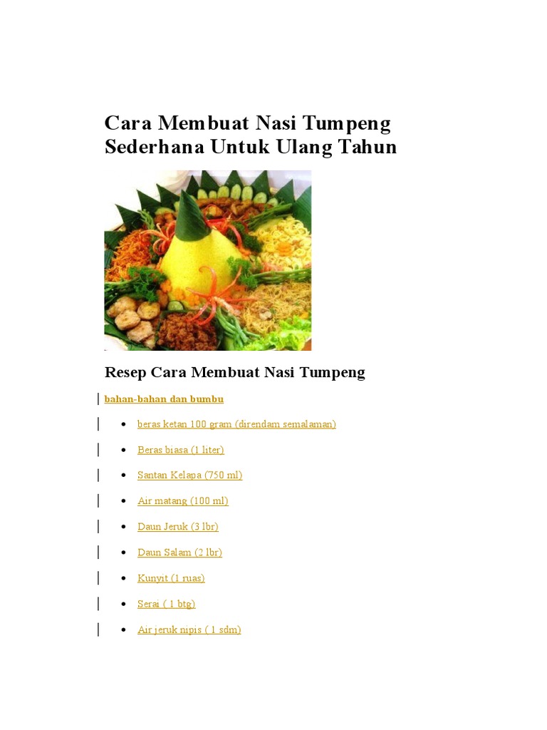 Resep Tumpeng Ulang Tahun Enak Banget Paduan Kuliner Indonesia