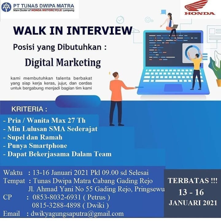 Lowongan Kerja Pt Tunas Dwipa Matra Honda Diponegoro Loker Lampung Media Informasi Lowongan Kerja Di Lampung