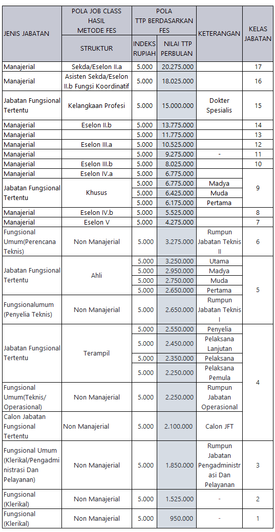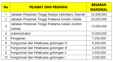 Daftar Tunjangan Kinerja Per Kelas Jabatan