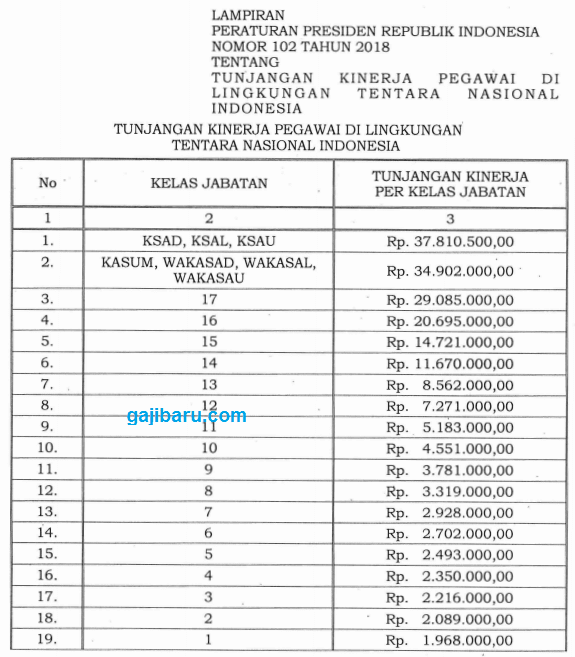 Tabel Tunjangan Kinerja Tni 2019 Atau Remunerasi Gajibaru Com