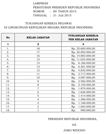 Perpres 89 Tahun 2015 Tunjangan Kinerja Polri