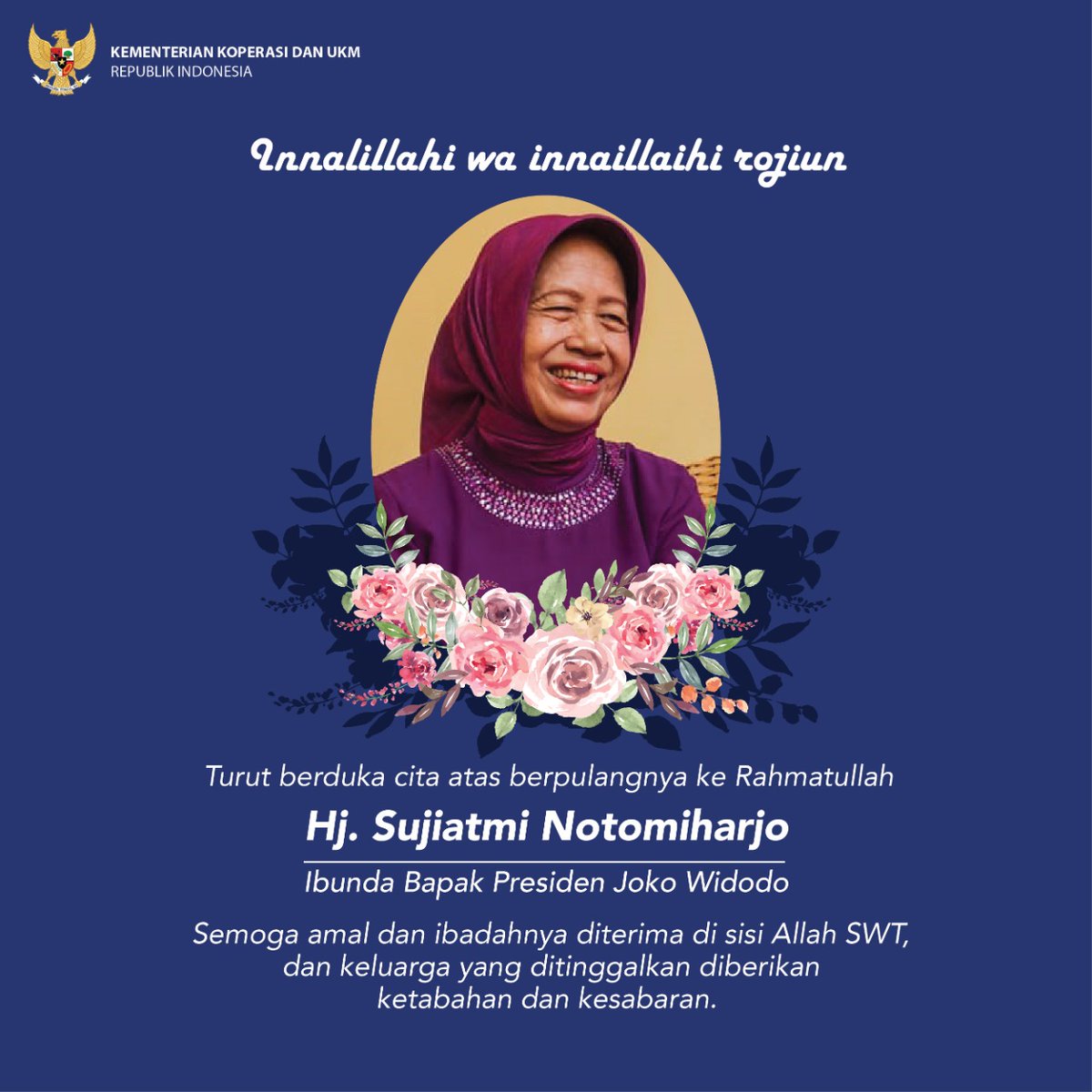 Kemenkopukmããã®ãã¤ã¼ã Innalillahi Wainnailaihi Rooji Uun Telah Meninggal Dunia Ibu Sudjiatmi Notomihardjo Ibunda Dari Presiden Jokowi Semoga Almarhumah Husnul Khotimah Dan Diterima Segala Amal Ibadahnya Https T Co H8vlnxzqdn